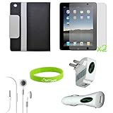 CrazyOnDigital 7 items Accessories Leather Case Charger Screen Protector for Apple iPad 2 iPad2 2nd Generation 16GB 32GB 64GB 3G Wifi