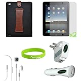 CrazyOnDigital 7 items Accessories Leather Case Charger Screen Protector for Apple iPad 2 iPad2 2nd Generation 16GB 32GB 64GB 3G Wifi